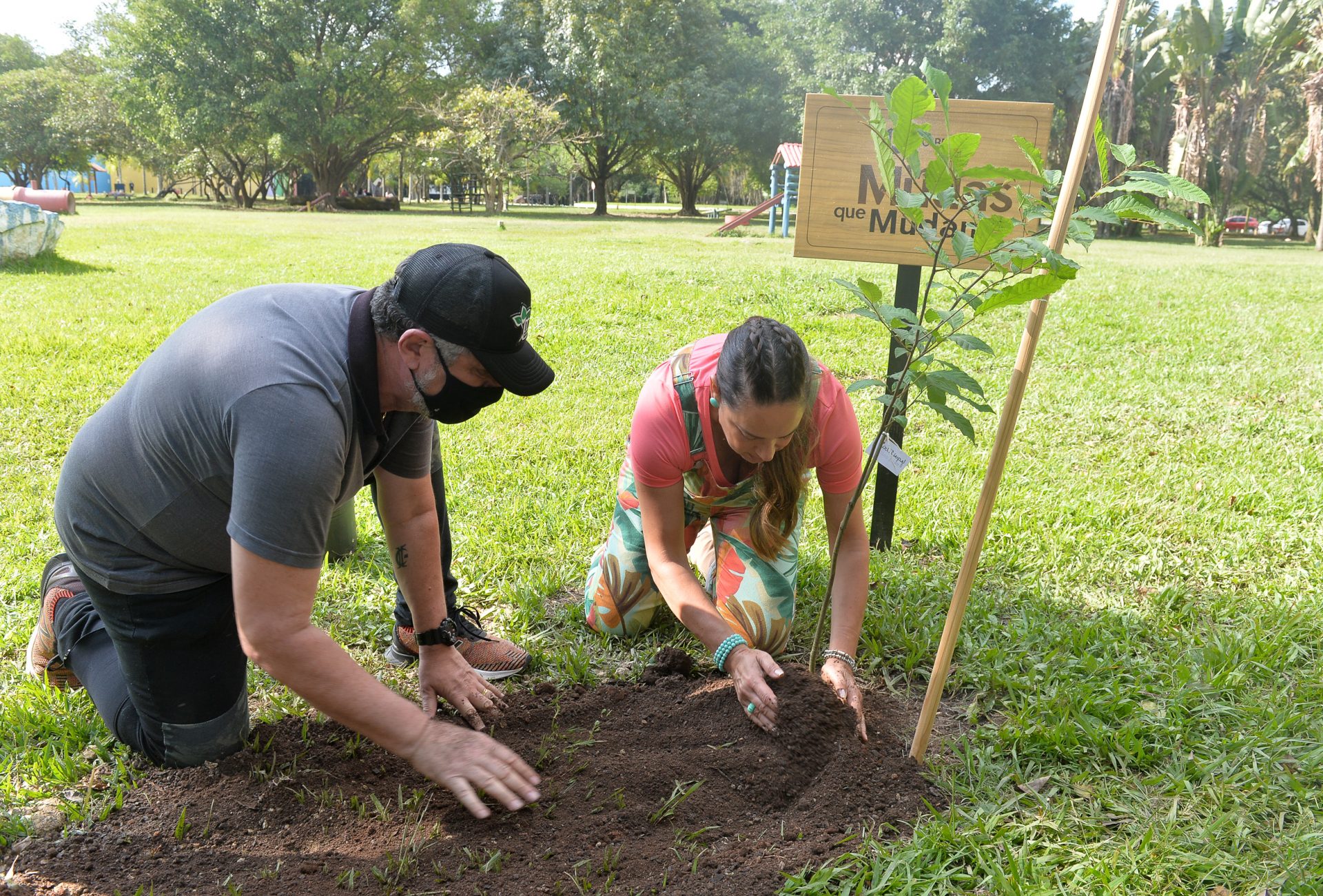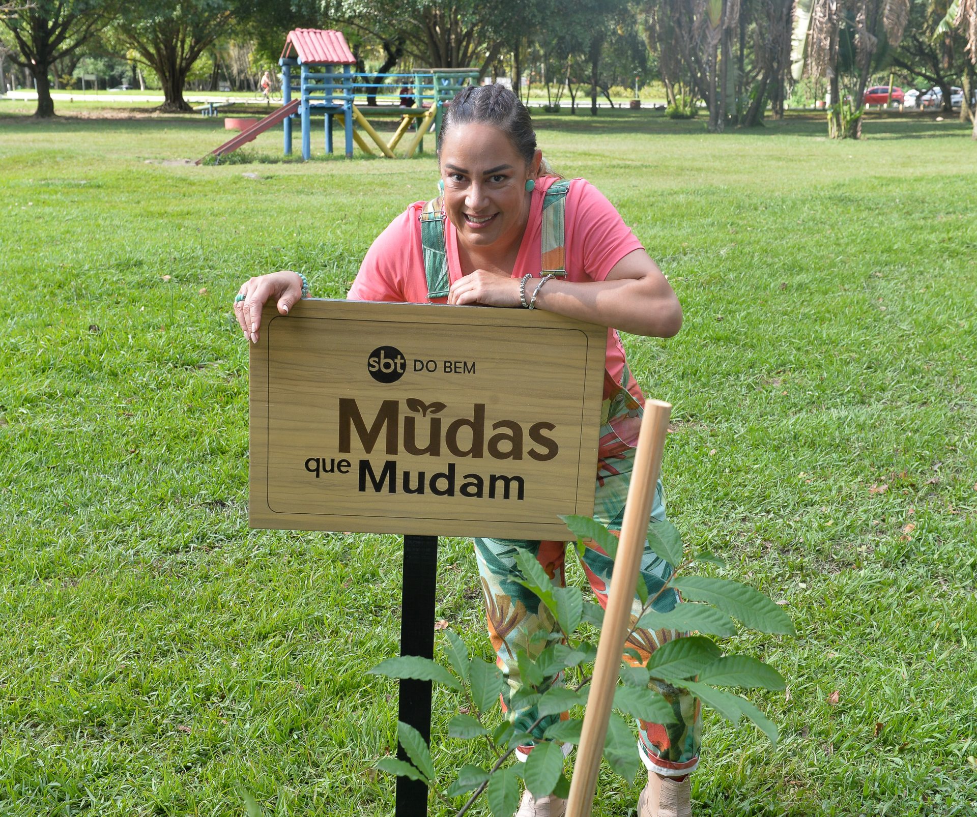 Nesta segunda-feira, 7 de março, Silvia Abravanel, filha do apresentador Sílvio Santos, foi ao Parque Ecológico do Tietê, localizado na zona leste da cidade de São Paulo, para dar continuidade ao projeto ‘Carbono Zero – Mudas que Mudam’. Dessa vez, a embaixadora participou de mais uma fase do plantio de cerca de 280 espécies de mudas nativas. O projeto é fruto de uma parceria entre o SBT do Bem, plataforma de responsabilidade social da emissora, e a GeoSustent, empresa de engenharia e consultoria ambiental.