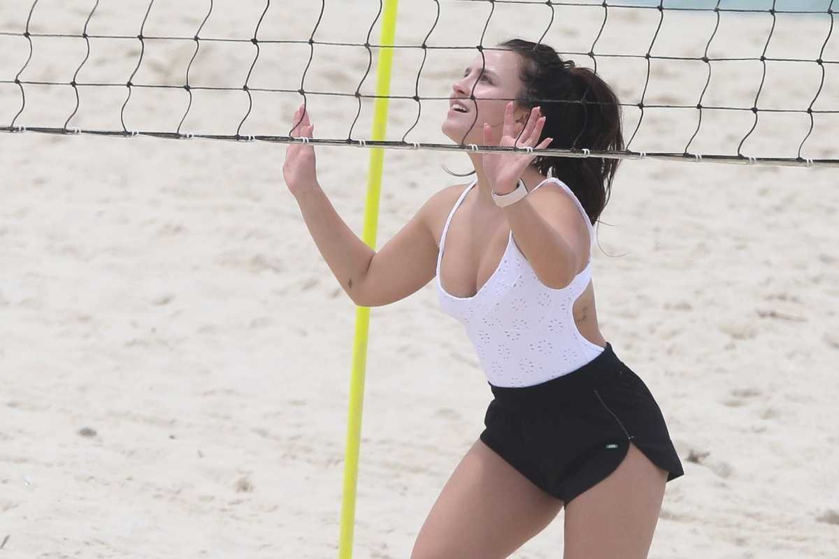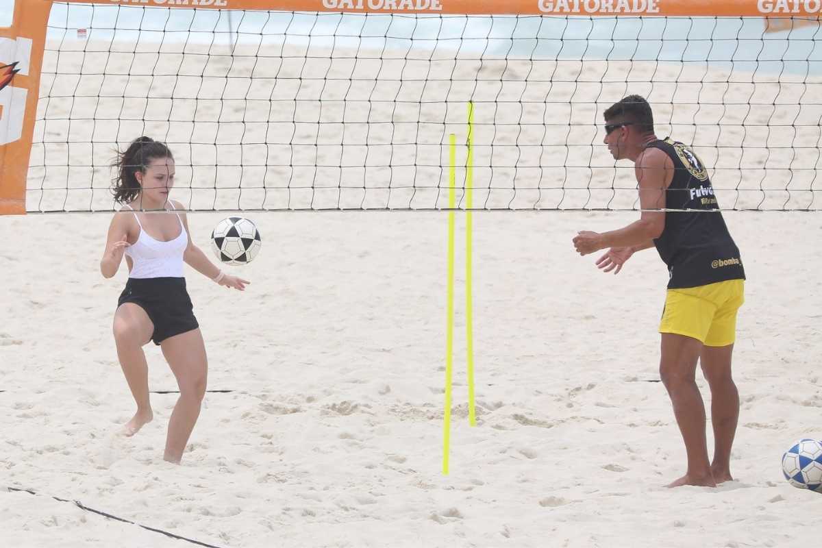 Ainda, ela aproveitou sua visita ao local para jogar futevôlei, esporte que, como o nome já sugere, mistura conceitos tanto do futebol quando do vôlei de praia.