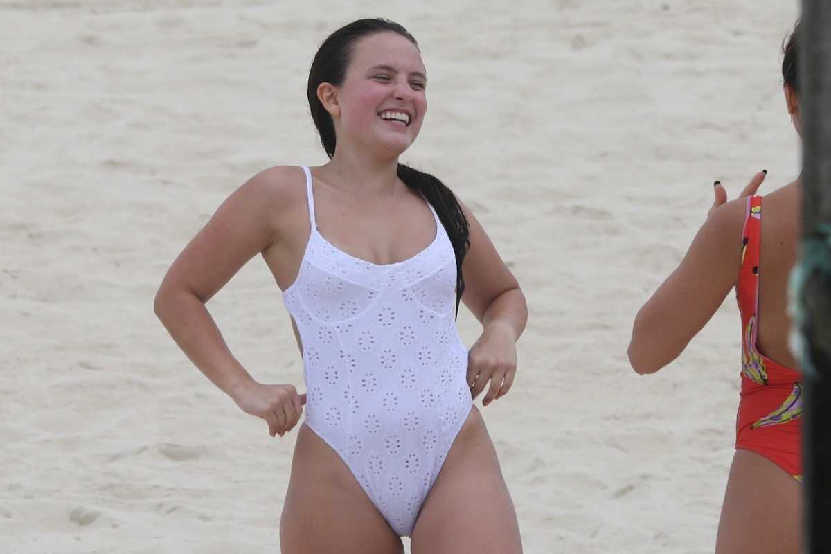 Solteiríssima, Larissa Manoela curte dia de praia de maiô branco sexy