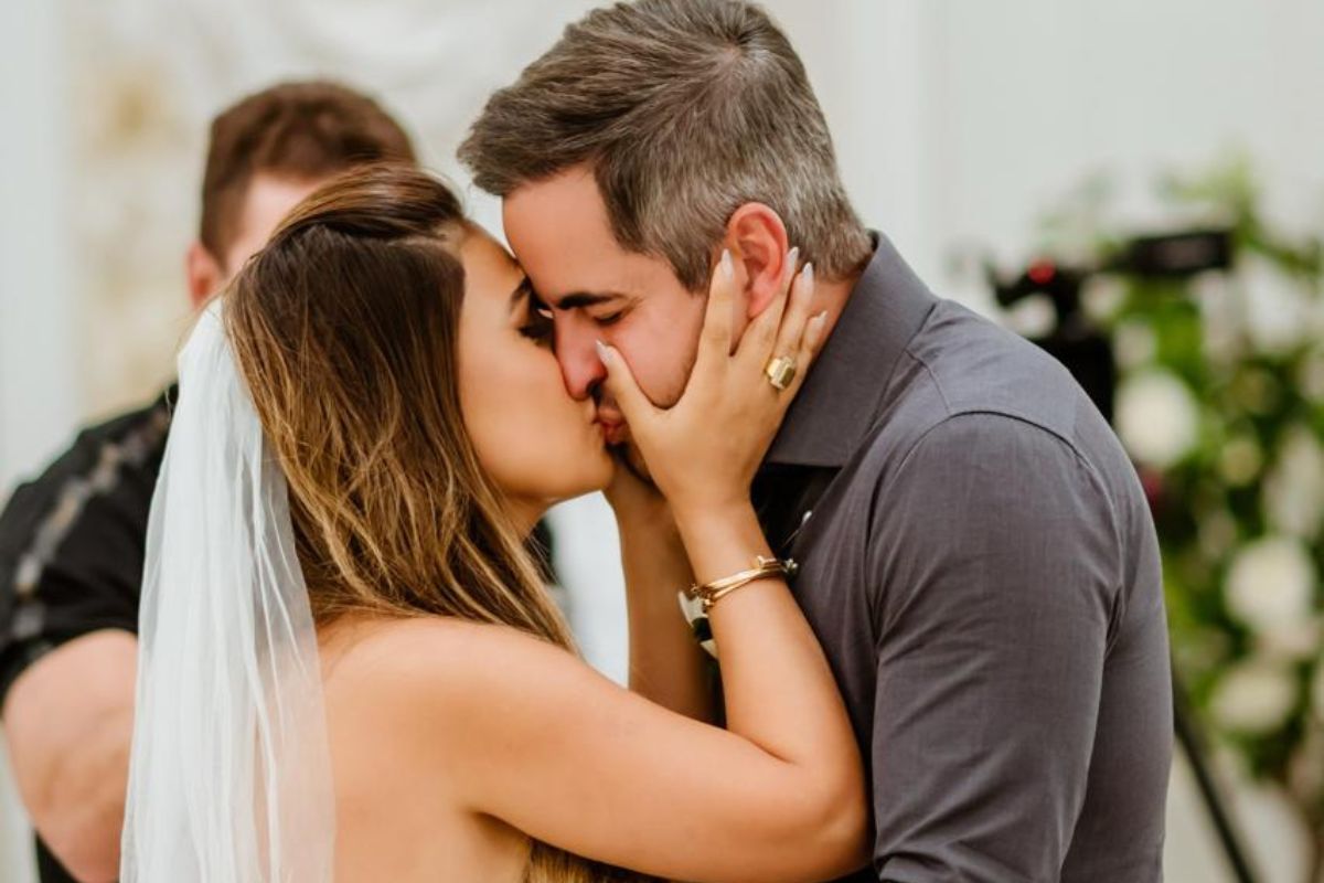 O casamento aconteceu no interior de São Paulo e teve uma cerimônia luxuosa, que reuniu amigos e familiares e teve direito a um coral do Maestro Renato Misiuk. A celebração foi realizada ao ar livre, com uma decoração repleta de rosas-brancas, combinando com o vestido da noiva.
