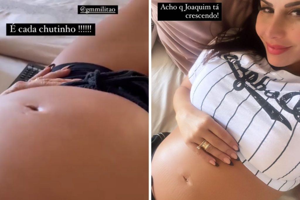 “Acho que o Joaquim está crescendo!”, comentou enquanto acariciava a própria barriga.