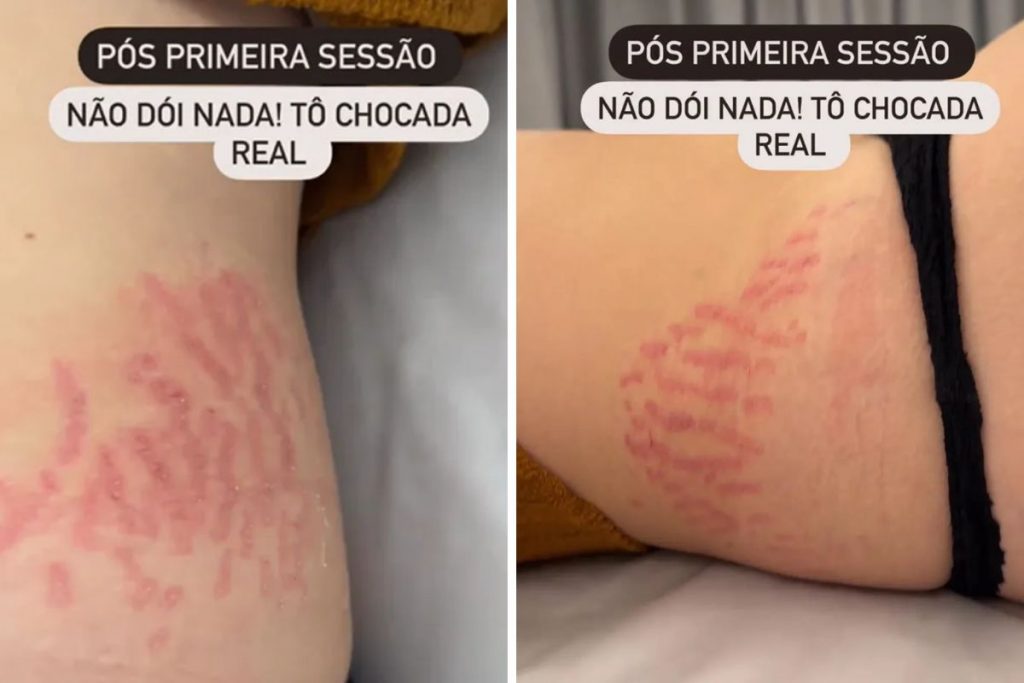 “Não dói nada. Estou chocada”, disse ao mostrar o resultado da primeira sessão.