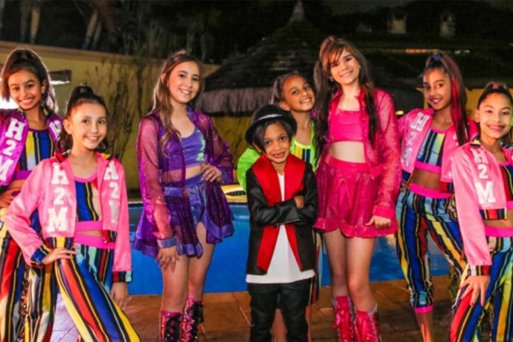 O trio H2M reuniu atores de ‘Poliana’, novela infantojuvenil do SBT, e a apresentadora Mara Maravilha na gravação do clipe da nova música de trabalho dos artistas mirins.