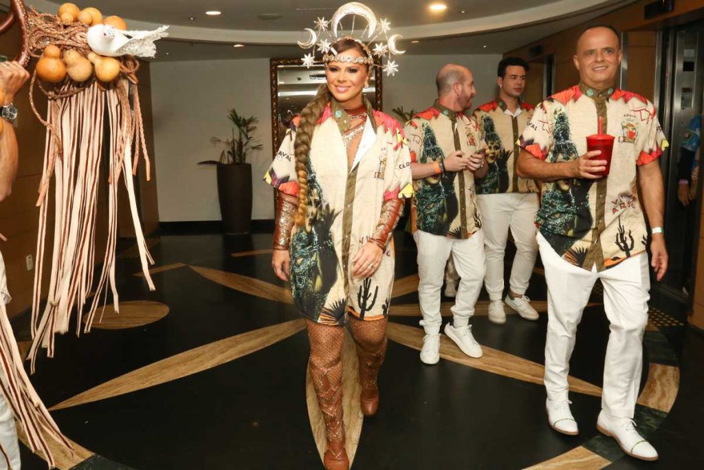Em conversa com a imprensa, que contou com participação de OFuxico, a dançarina comentou sobre o desfile que viria, e falou um pouco de sua fantasia: “A Mancha fala do passo de xaxada, dessa cultura nordestina, e eu represento ‘Asa Branca’, um grande sucesso do reio do baião, Luiz Gonzaga. […] Estou me sentindo bem, por isso estou assim”.
