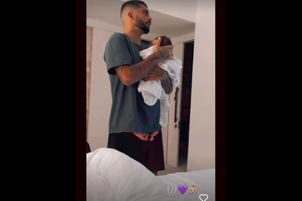 Na última quarta-feira, 11 de janeiro, a modelo compartilhou em seu Instagram Stories um vídeo em que o marido aparece ninando a pequena.