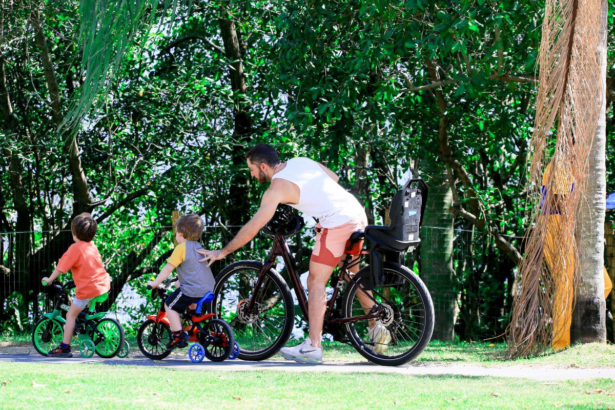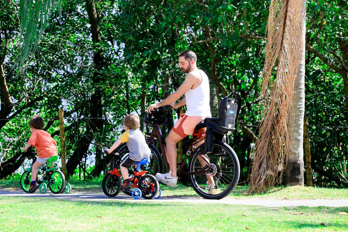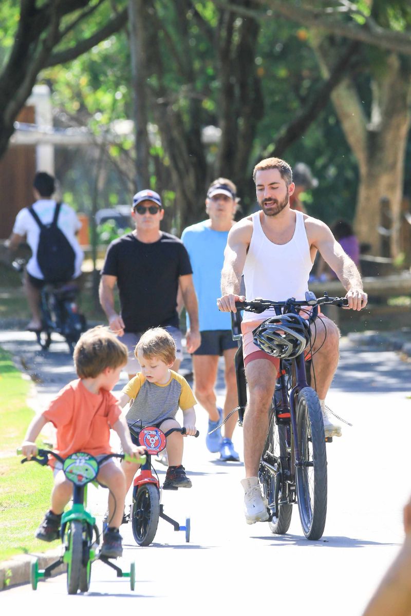 Thales Bretas passeia de bicicleta com os filhos no Rio de Janeiro. Fotos!