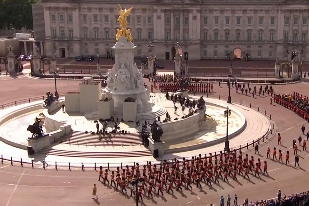 Rei Charles liderando o cortejo à Rainha – Foto: Reprodução TV Globo