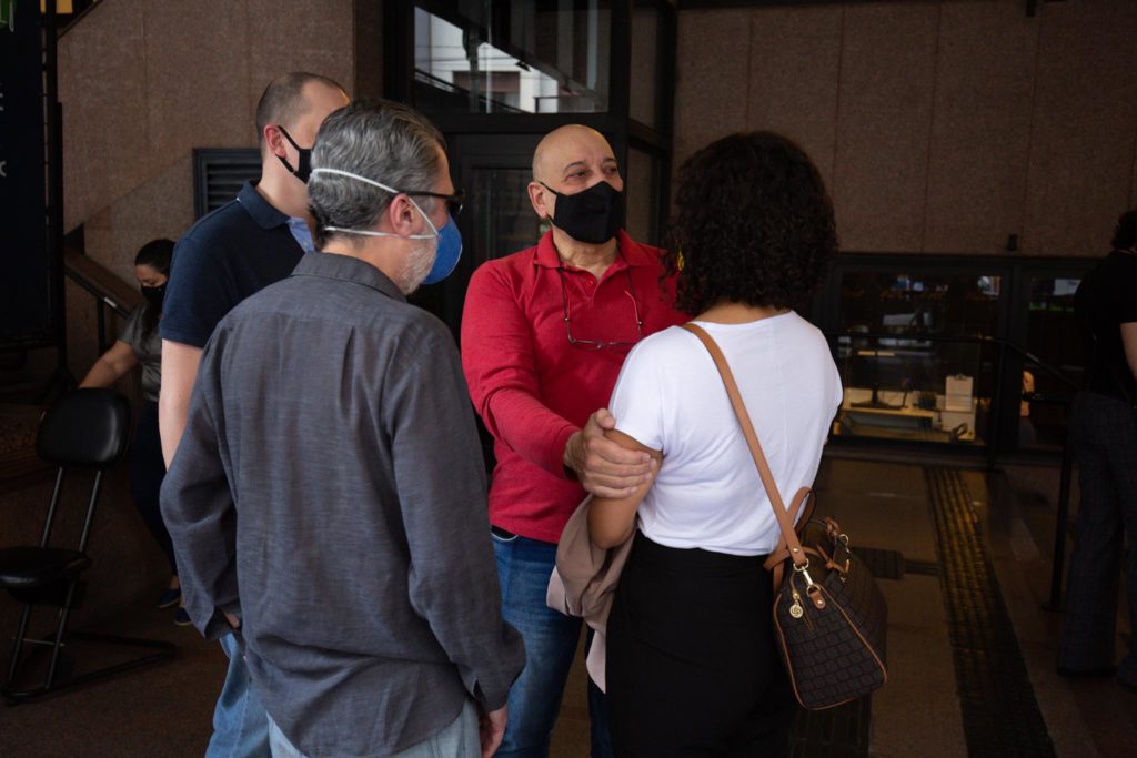 Carlos, Fabrício e Duda Mamberti, filhos do veterano ator, receberam o carinho de amigos como Cássio Scapin, Celso Frateschi, Eduardo Suplicy, entre outros.