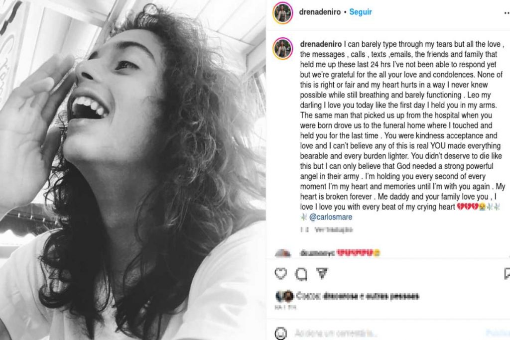 “Estou profundamente angustiado com a morte do meu amado neto Leo. Agradecemos muito as condolências de todos. Pedimos que nos seja dada privacidade para lamentar a perda de Leo”, disse De Niro.