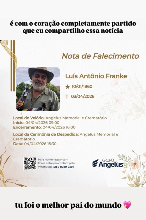 Luis Franke - Foto: Reprodução/Instagram O ator e dublador Luís Franke morreu aos 66 anos, na sexta-feira, 03 de abril. A confirmação surgiu nas redes sociais oficiais do artista e também no perfil da filha, Luísa Franke. No entanto, a causa da morte não foi informada.