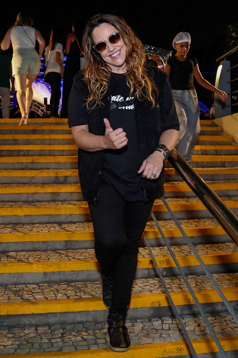 Thalita Rebouças também marcou presença, se emocionando, cantando e dançando com os hits da tradicional banda,