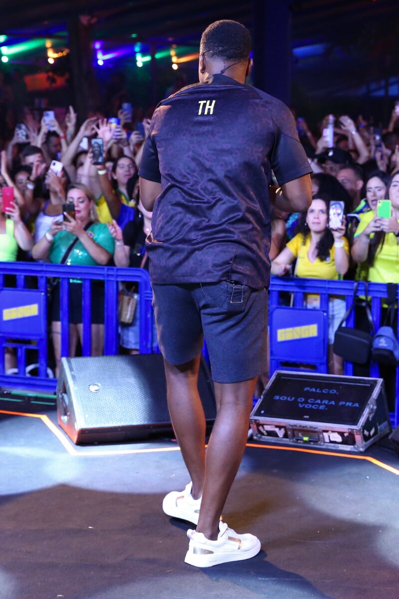 A Arena Ginga Itanhangá, na Zona Oeste do Rio de Janeiro, ficou lotada na sexta-feira, 02 de Dezembro. No local, diversas pessoas se reuniram para conferir a partida entre Brasil x Camarões e, mesmo diante da derrota da seleção canarinho, Thiaguinho se apresentou com seu showzaço, animando a galera.