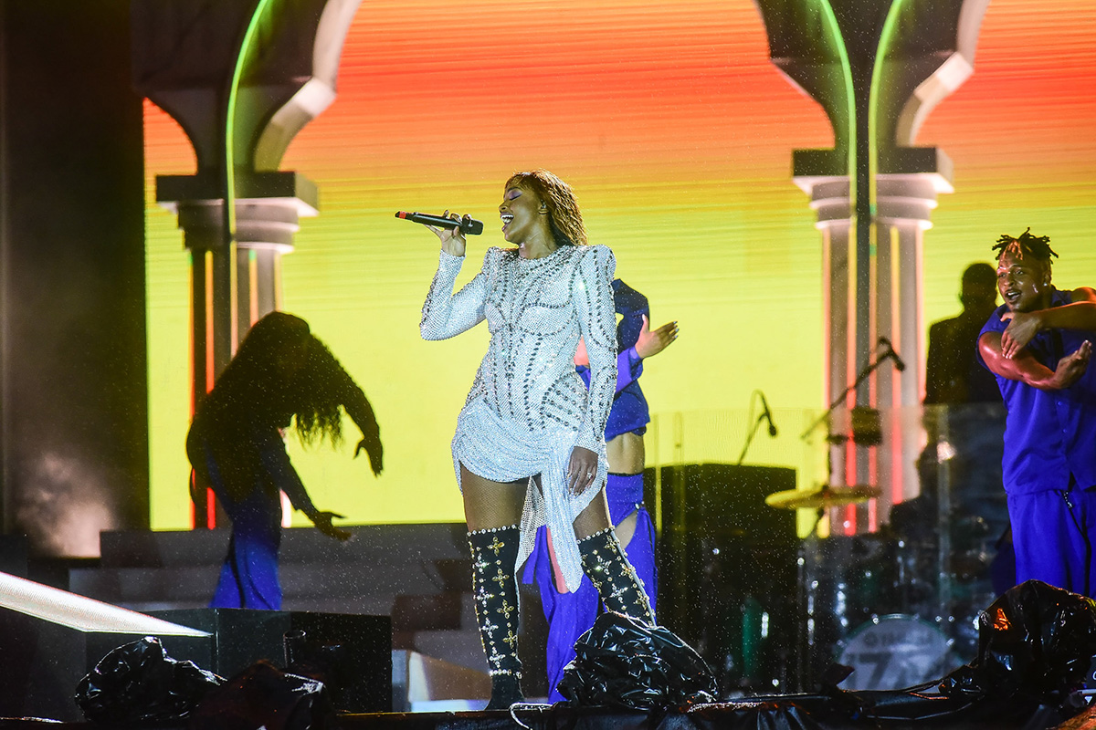 Iza foi a primeira brasileira negra a se apresentar no palco principal do festival – Foto: Marcelo Sá Barretto/AgNews