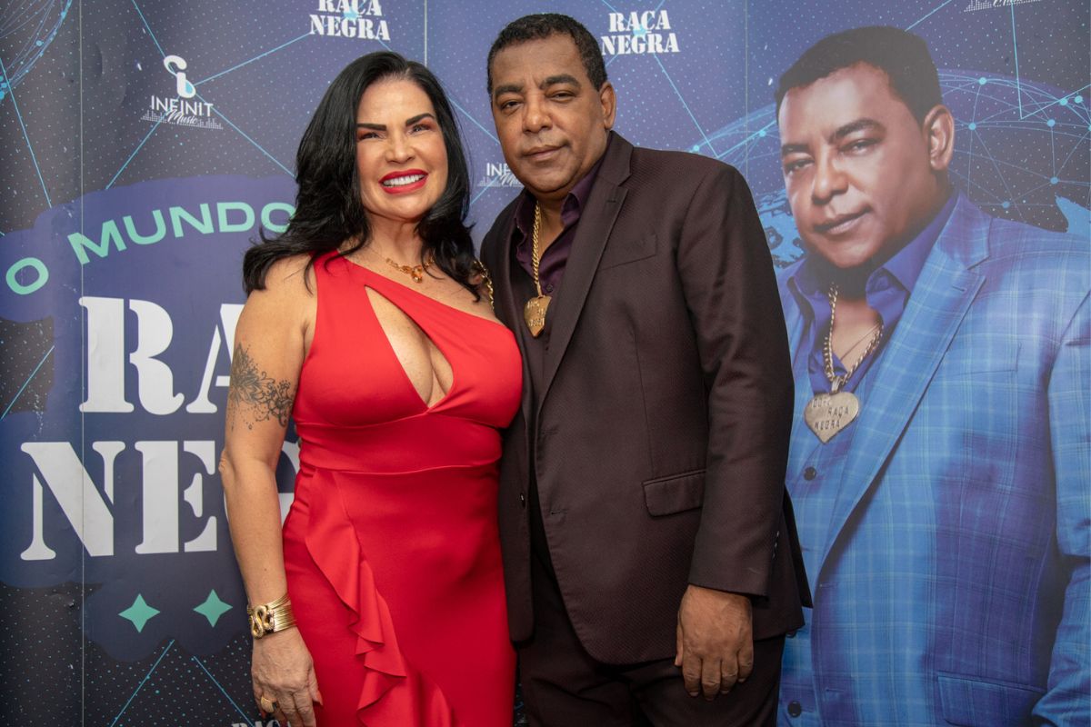 Nadine e Luiz Carlos posam juntos nos bastidores do show do Raça Negra (Beatriz Damy/Brazil News)
