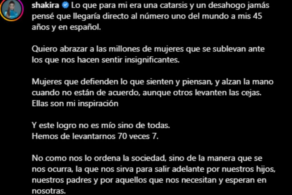“O que para mim era uma catarse e um desabafo nunca pensei que chegaria direto ao número um do mundo aos 45 anos e em espanhol. Quero abraçar as milhões de mulheres que se revoltam diante das que nos fazem sentir insignificantes. Mulheres que defendem o que sentem e pensam, e levantam a mão quando discordam, mesmo que outros levantem as sobrancelhas. Elas são minha inspiração.”