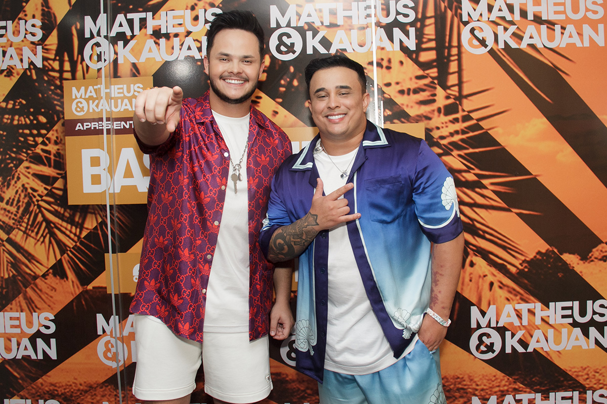 Matheus e Kauan posaram para os fotógrafos na gravação do DVD – Foto: Clayton Felizardo/Brazil News