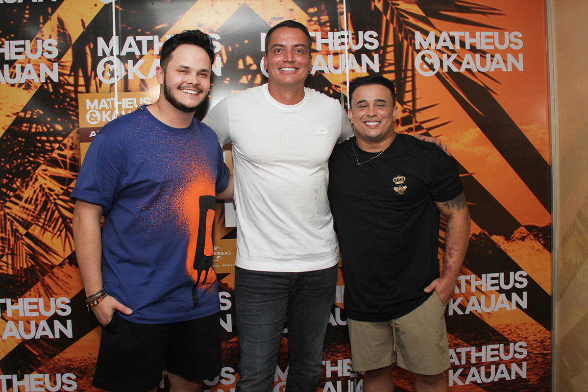 Léo Dias marcou presença e fez questão de posar com Matheus e Kauan – Foto: Clayton Felizardo/Brazil News