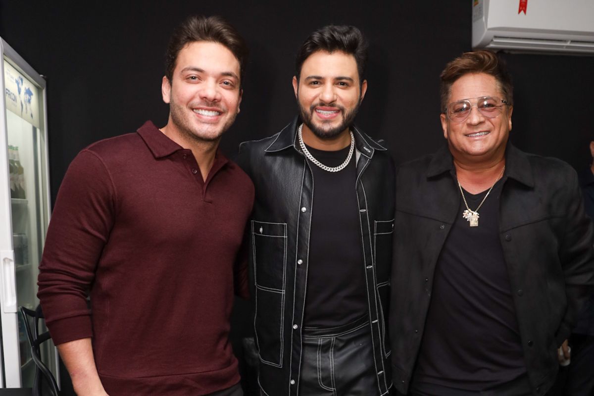 Quem também estava presente no show foi o cantor Leonardo, que posou para fotos com Wesley e Thiago no camarim.