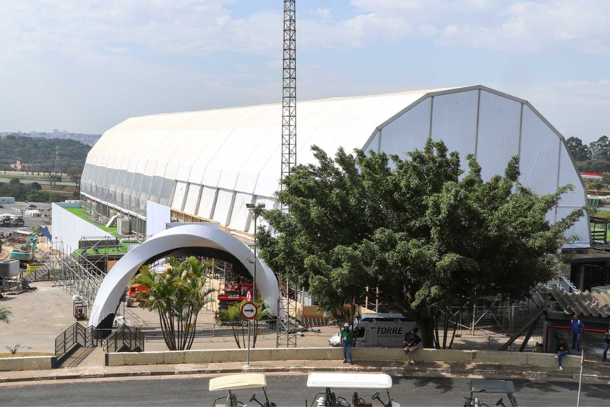 No The One, estão sendo instaladas as placas metálicas que vão compor a cenografia combinadas aos 39 telões de led. No palco Factory, inspirado nas antigas fábricas da metrópole e que será dedicado a cultura urbana, já é possível ver os “tijolinhos” da fachada.