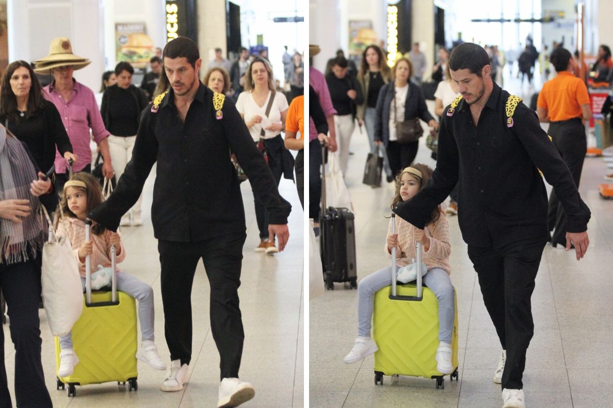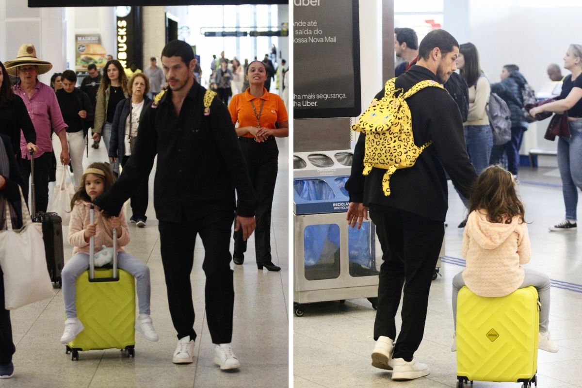 E um pouco mais cedo, quem apareceu por lá foi José Loreto, o Lui Lorenzo de Vai na Fé. Nos cliques, ela estava com a filha, Bella, do relacionamento com Débora Nascimento. O ator ainda chamou a atenção por levar a filha em uma espécie de “garupa” da mala de rodinhas, além de carregar uma mochila de onça-pintada nas costas.