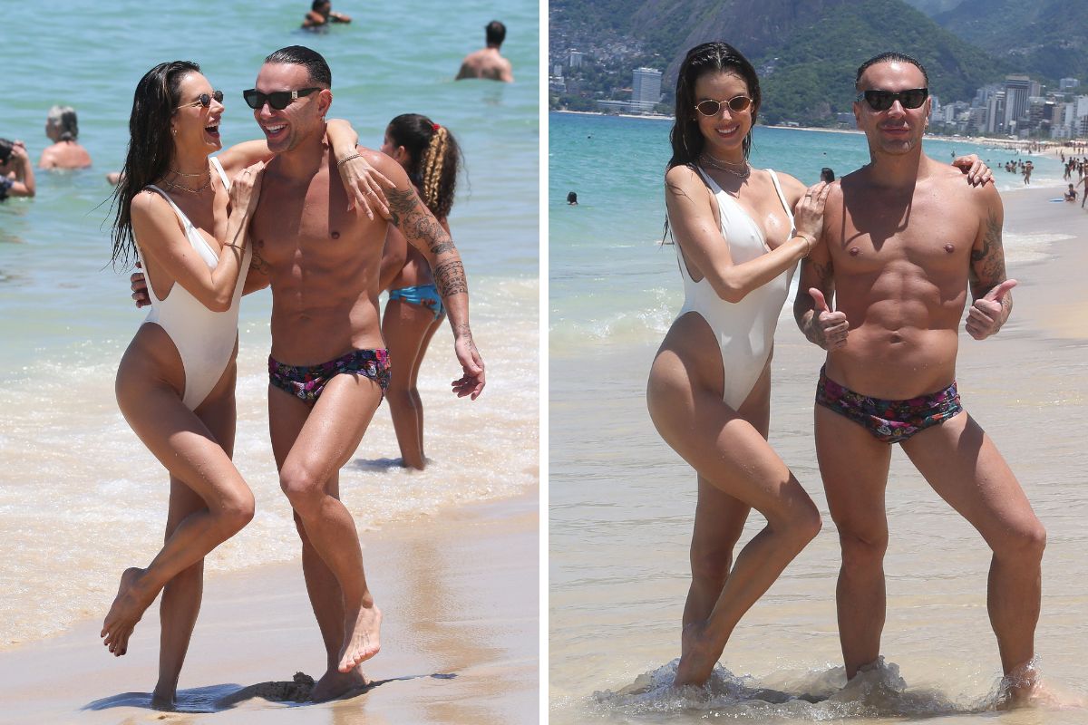 Alessandra Ambrósio curte praia em Ipanema com Matheus Mazzafera
