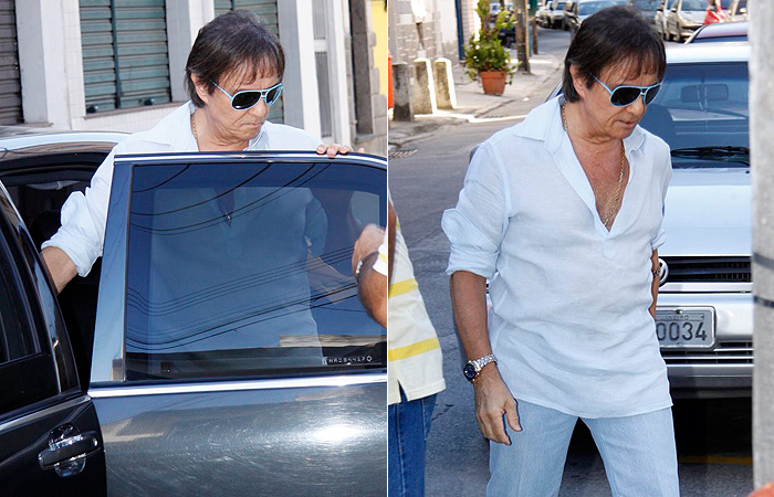 Abatido, Roberto Carlos chegou para a missa na Igreja Nossa Senhora do Brasil, no Morro da Urca