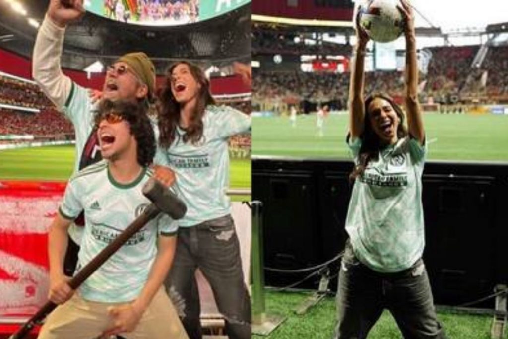 A artista compareceu a uma partida de futebol em um estádio em Atlanta. Bruna e seus amigos ganharam camisetas personalizadas na partida e compartilharam nas redes sociais um pouco dos momentos que tiveram.