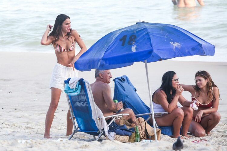 Bruna estava acompanhada da irmã, Luana Marquezine. As duas caminharam pela areia, colocaram o papo em dia e deram muita risada. A atriz usava um biquíni listrado e estavam bem à vontade.