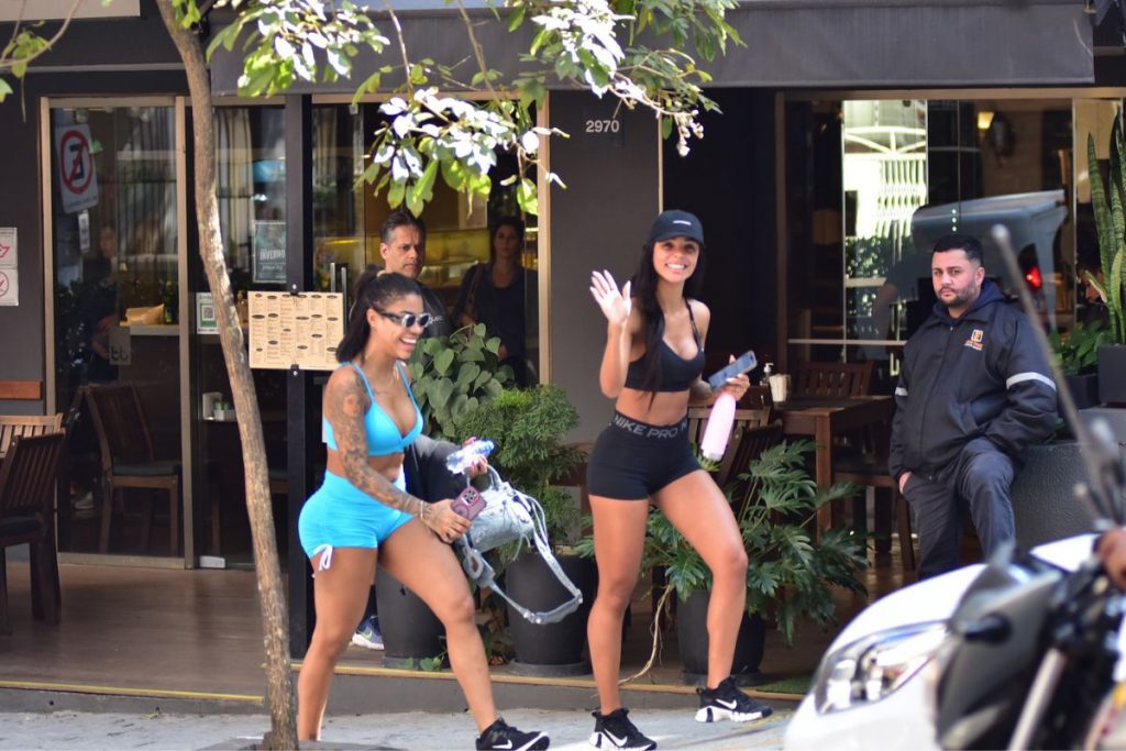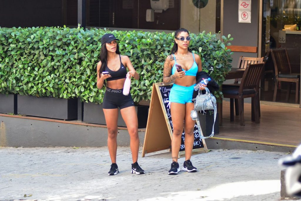 A dupla foi clicada saindo da academia e foi simpática, acenando e fazendo biquinho para as fotos. Brunna também posou para fotos com uma fã que estava no local.