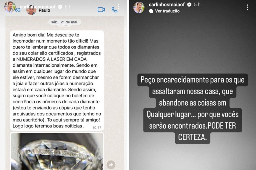 Carlinhos Maia teve o apartamento em Alagoas invadido por assaltantes. Os criminosos roubaram R$5 milhões do influenciador. Após o ocorrido, ele apareceu nas redes sociais e comentou sobre os itens que foram levados, entre eles os diamantes de um colar.