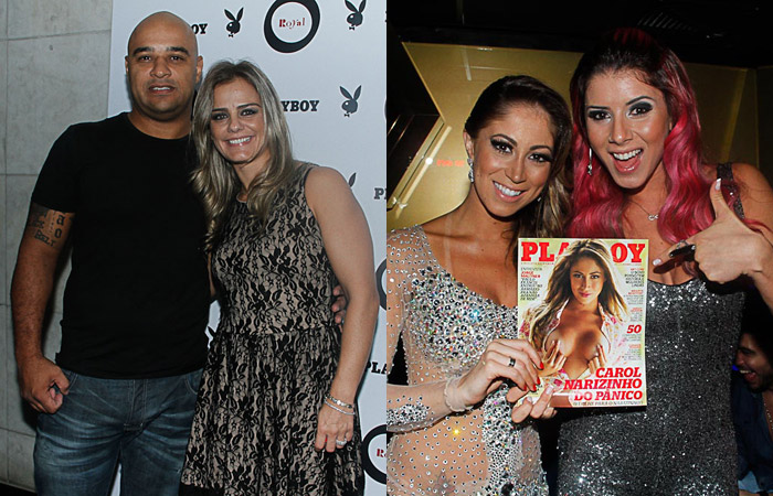 Capa da Playboy de março, Carol Narizinho ousou no look para a festa de lançamento da revista, realizada na noite de quinta-feira (14) no Royal Club, em São Paulo. A panicat estava com um vestido todo transparente e bordado com pedrarias, que revelava suas marquinhas de biquíni e uma tatuagem de borboleta no baixo ventre.