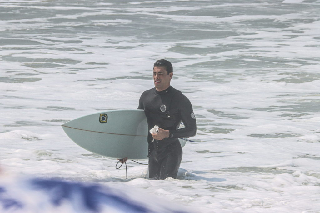 Cauã Reymond aproveitou o fim de semana para desestressar. O ator foi visto surfando na Prainha, no Rio de Janeiro. Usando roupa apropriada, Cauã fez diversas manobras no mar com uma de suas pranchas.