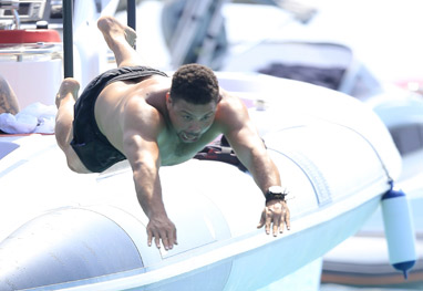 De biquíni preto, Lindsay Lohan curte o mar da Grécia