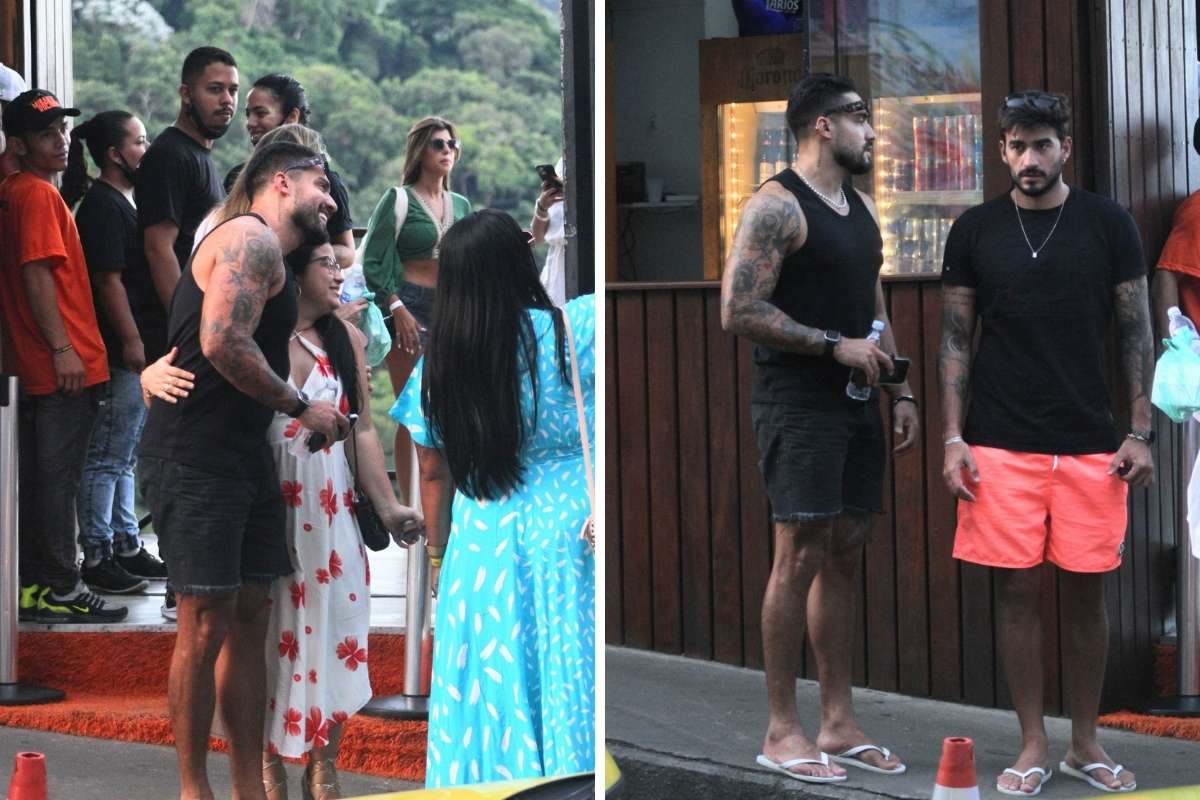Thais Braz encontrou os ex-BBBs Guilherme Napolitano, do BBB20, Arcrebiano, do BBB21, e Rodrigo Mussi, do BBB22.