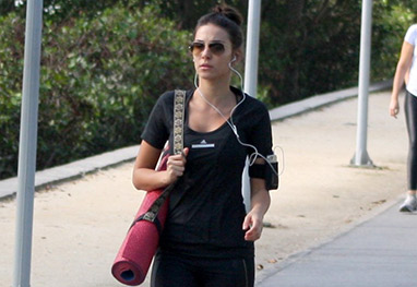 Fernanda Lima se protegeu do sol enrolada em uma canga