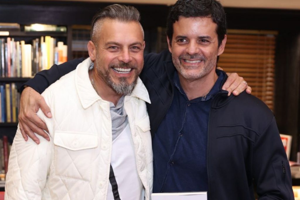 Filho gato de Luigi Baricelli faz aparição rara em lançamento de livro do ator