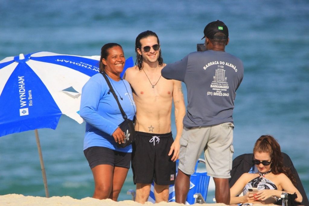 Fiuk beija namorada e também faz alegria de fãs na praia