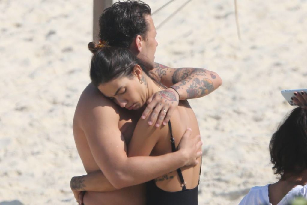 Nas fotos, os papais aparecem abraçados em um momento de tranquilidade e, em outras imagens, Gabi aparece brincando com o pequeno Davi na areia.