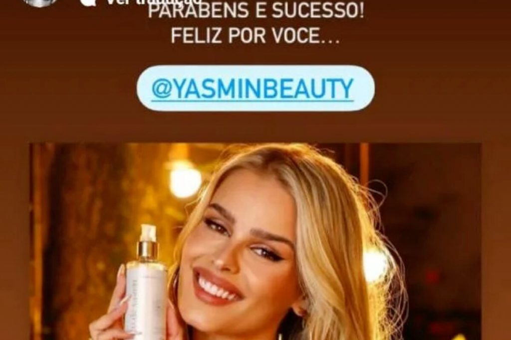 Separado de Yasmin Brunet, Gabriel Medina compartilhou nos stories do Instagram, na terça-feira 08 de fevereiro, uma foto da ex-mulher fazendo propaganda de um óleo de cabelo de sua nova linha de cosméticos e desejou sucesso: “Parabéns e sucesso. Feliz por você”, escreveu o surfista na legenda da foto marcando a modelo e conta da marca, Yasmin Beauty