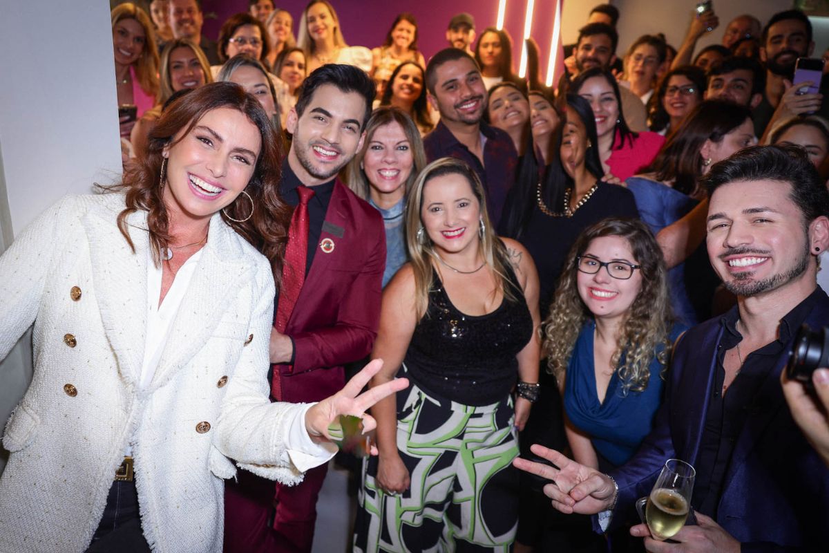 A presença da ex-Global causou tumulto no local, mas ela parou para fotos com fãs e conversou com convidados da festa. Com simpatia e bom humor, ela ainda brincou com fotos suas que estavam nas paredes da loja.