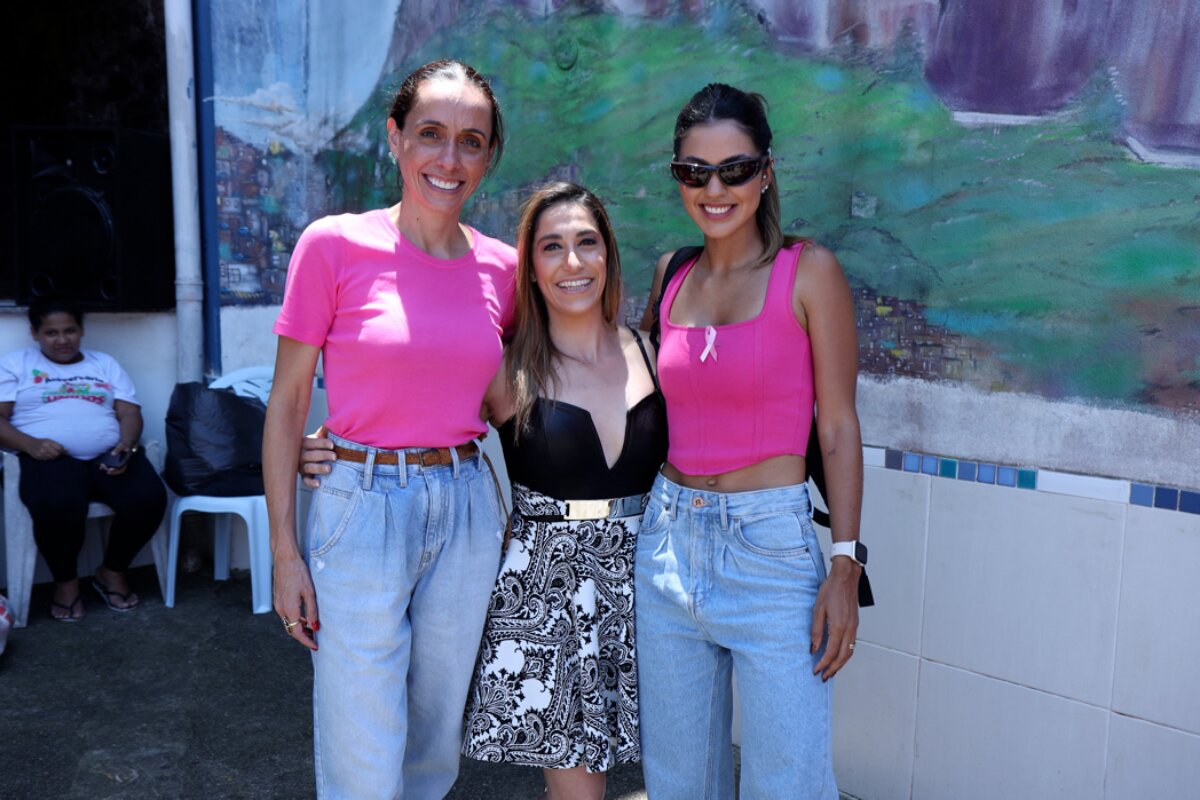 Giovanna Antonelli e Ingrid Guimarães com a médica Viviane Monteiro, organizadora da ação social – Foto: Gabriel Rangel/ AgNews