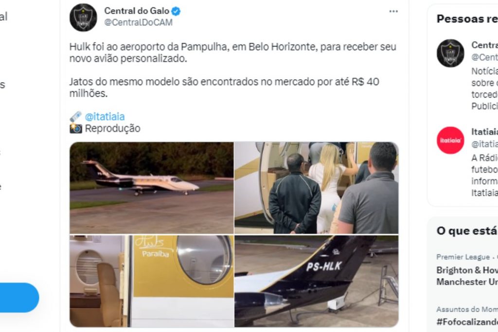 Quem viralizou momentos de Hulk Paraíba recebendo a aquisição foi Leandro Pereira, CEO da corretora de aeronaves privada Goal Aircraft, compartilhando fotos do momento nas redes sociais, assim como o piloto de avião Thiago Santim.