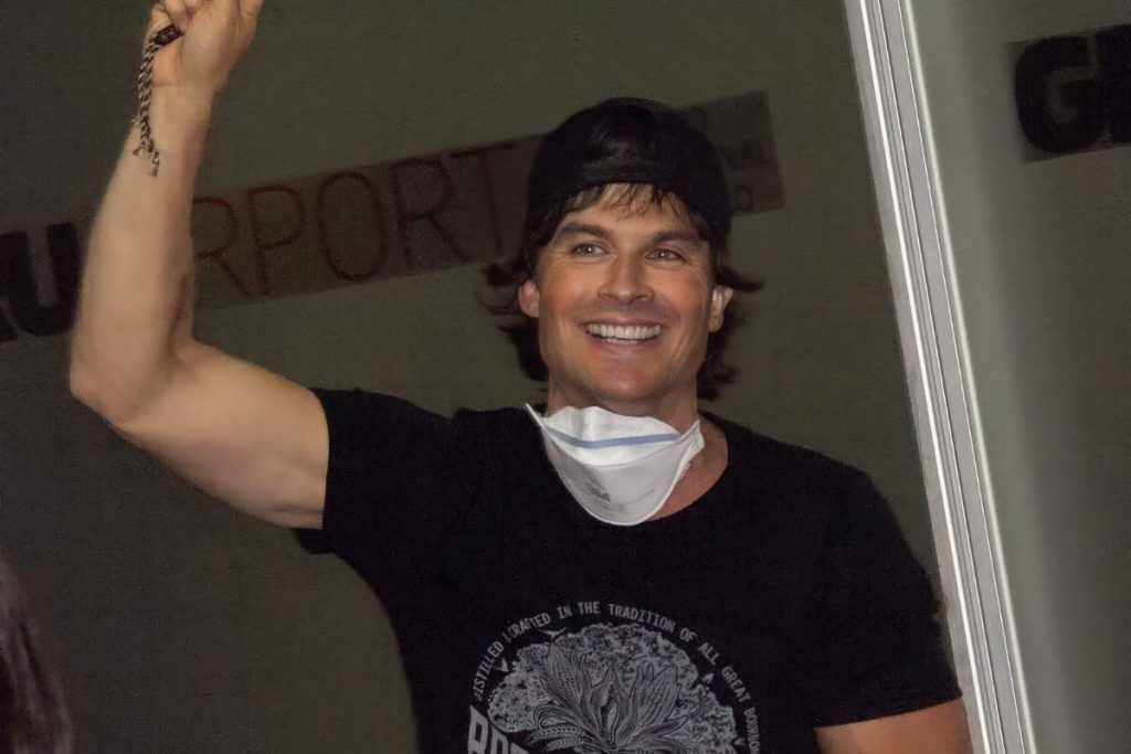 Ian Somehalder vive caos no aeroporto mas não perde a pose