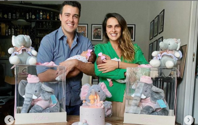 Joaquim Lopes e Marcella Fogaça celebram 1 mês das gêmeas