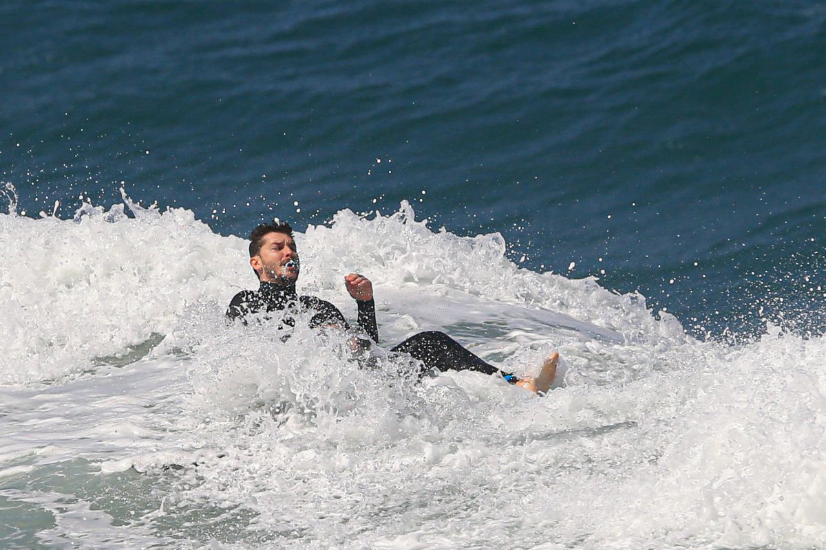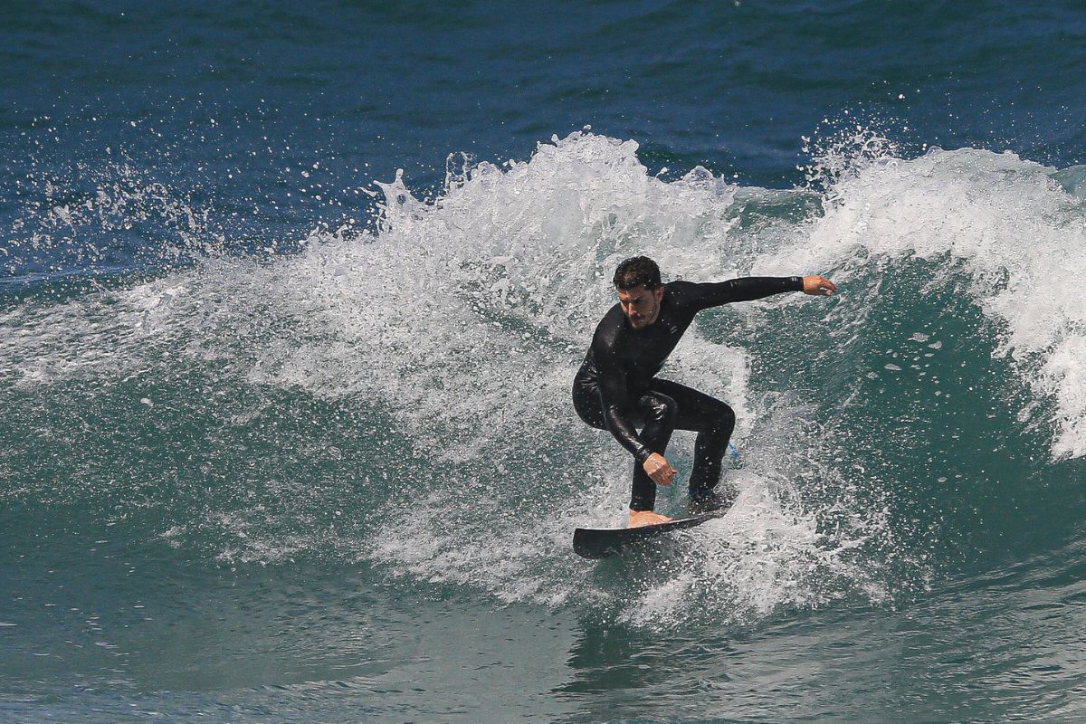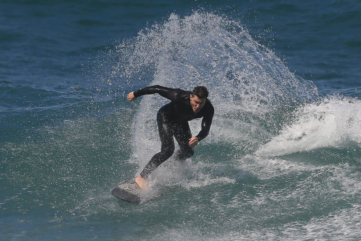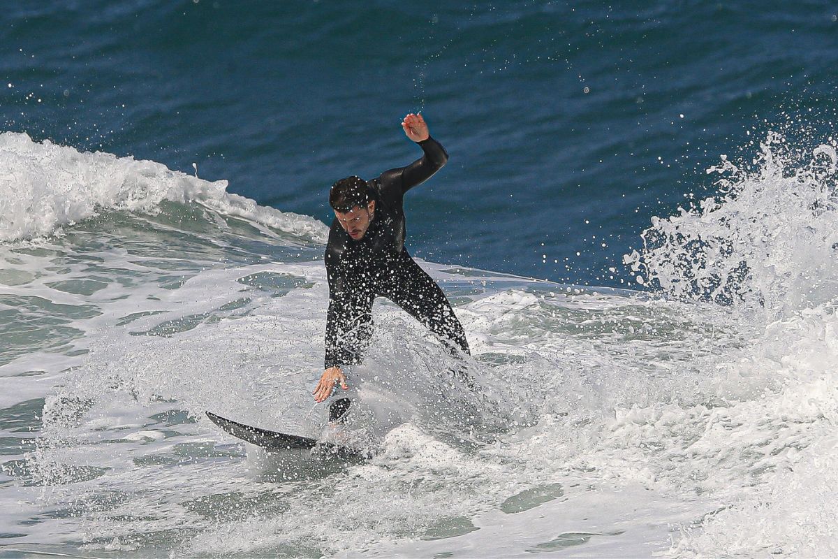 O marido de Camila Queiroz foi mais ousado e arriscou as ondas da Prainha, um pedaço mais reservado do litoral carioca. Todo equipado, ele surfou várias manobras, surpreendeu com as habilidades e, claro, também levou alguns caldos.