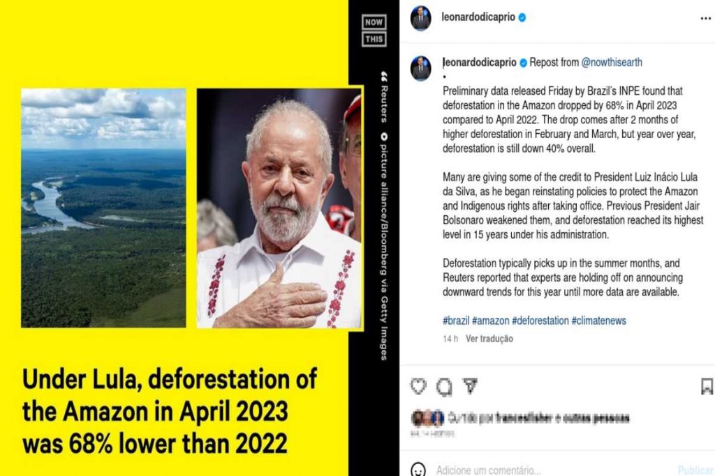 O ator aproveitou a notícia para repostar dados sobre a Amazônia e celebrar a redução do desmatamento sob o governo Lula.