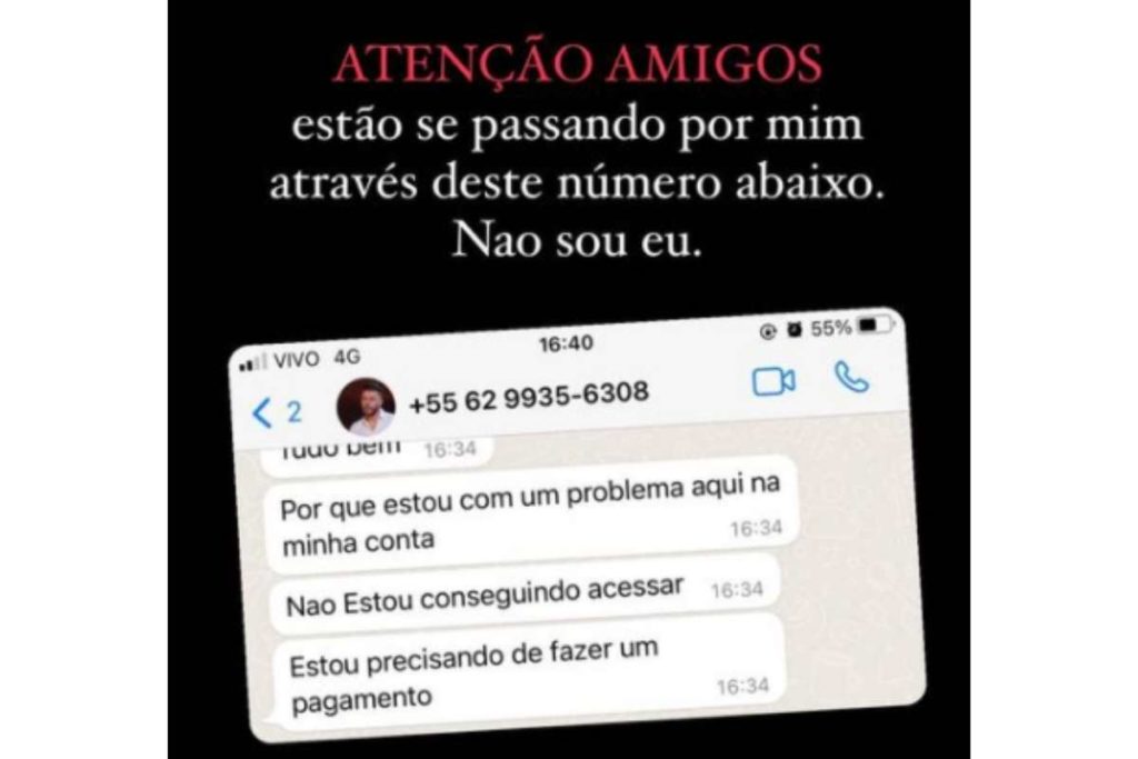Ele foi às redes sociais alertar a respeito do golpe que estão tentando dar em seu nome, para extorquir dinheiro de amigos e familiares. “Atenção amigos, estão se passando por mim através desde número abaixo. Não sou eu”, declarou o artista.