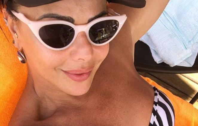 Em sua conta no Instagram, a atriz de 47 anos compartilhou uma foto em que aparece usando biquíni e exibindo um corpão.