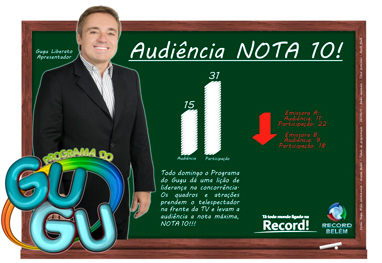 Com o bom desempenho do Programa do Gugu, na Record, o departamento de marketing da emissora preparou uma ação publicitária para o mercado. Nela, são mostrados os números de audiência da atração, que todos os domingos é vice-líder isolada, com média de até 15 pontos no Ibope, chegando a ficar em primeiro lugar durante muitos minutos.