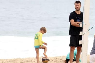Rodrigo Hilbert e Fernanda Lima aproveitaram o domingo (6) para levaram os gêmeos, João e Francisco, para a praia. A família foi fotografada nas areias do Leblon, Rio de Janeiro.